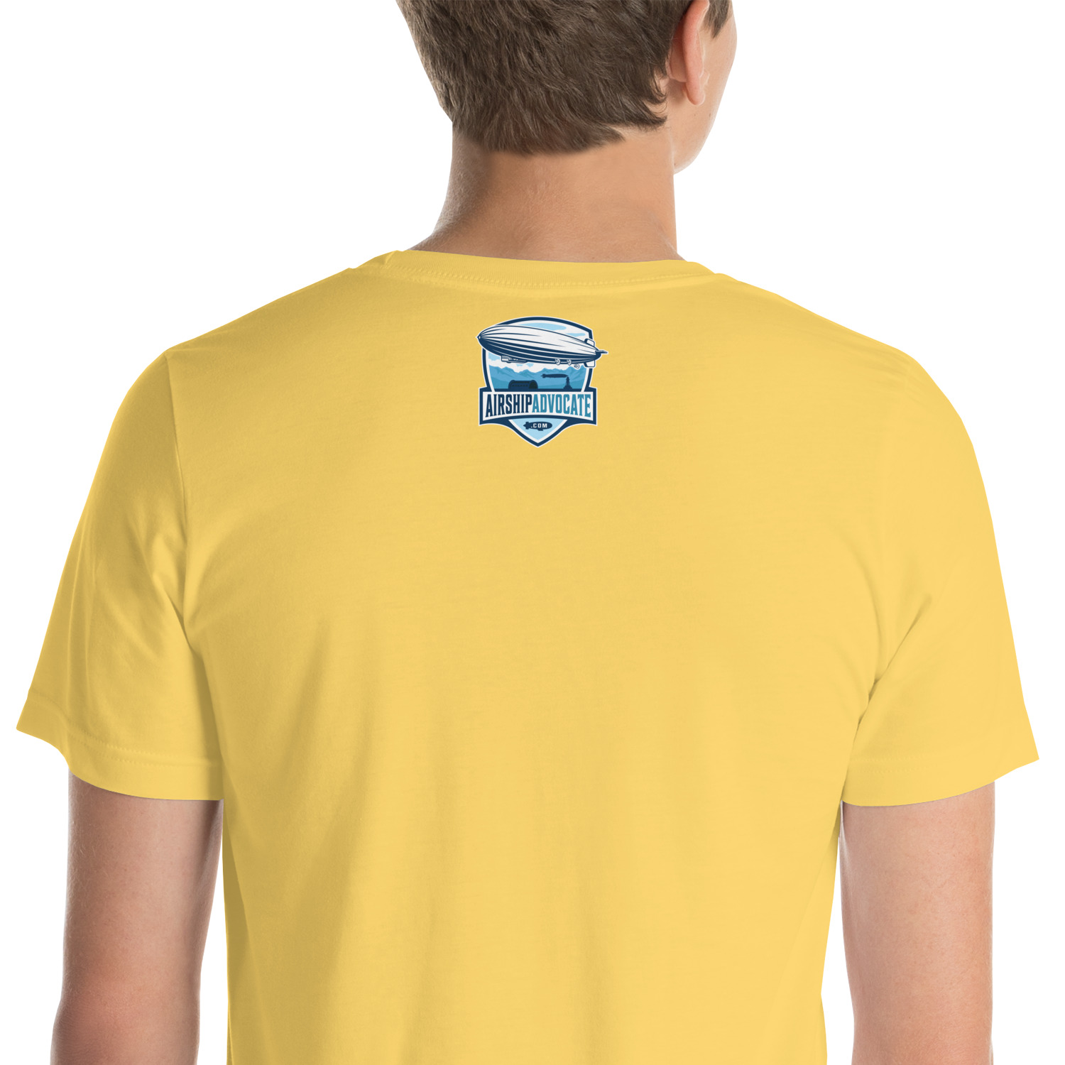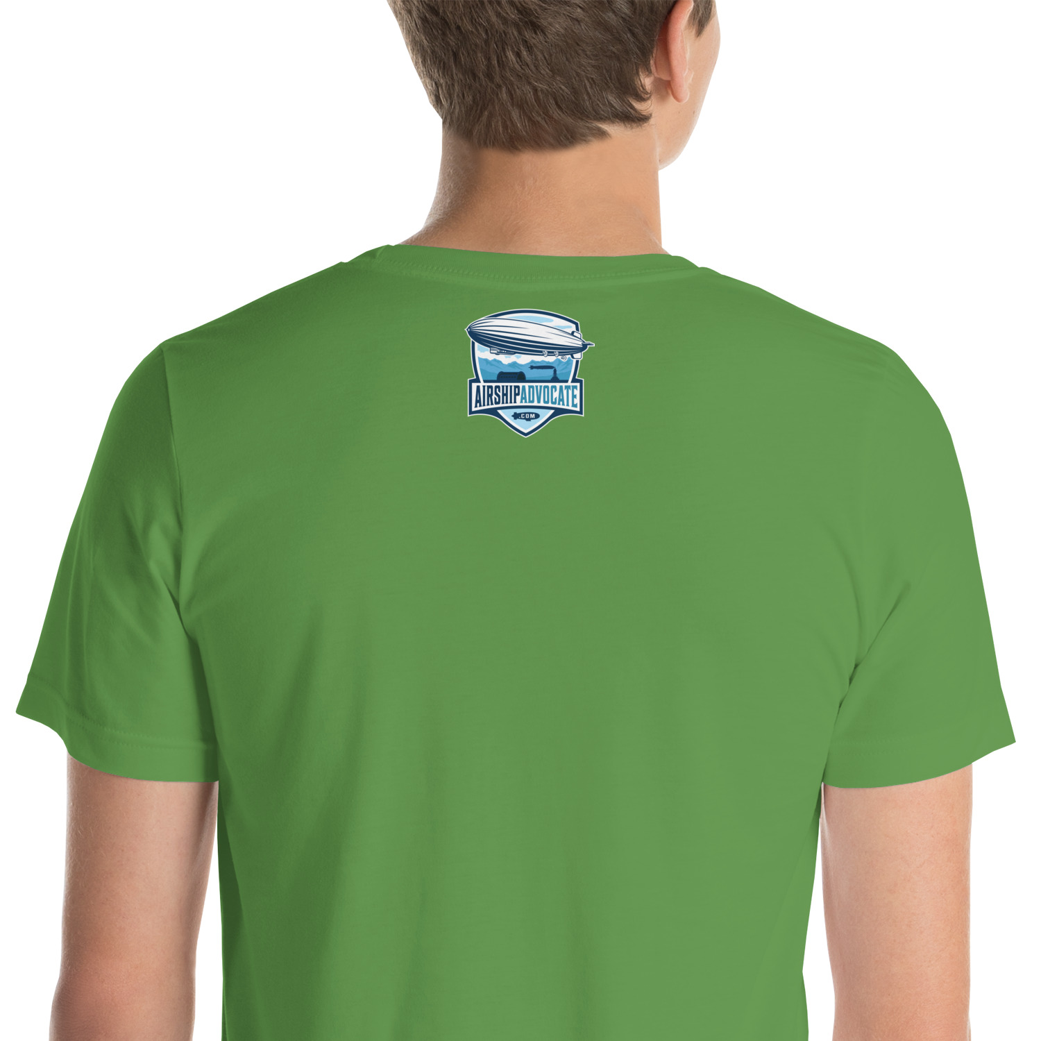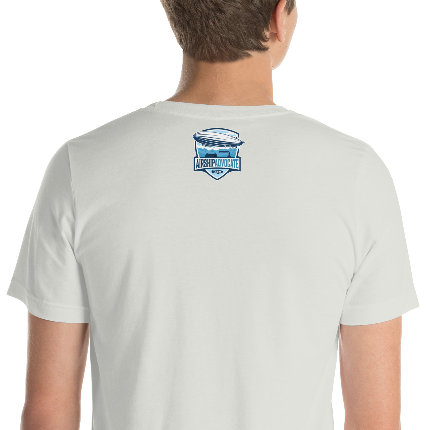 This light version Moffett Macon Akron T-shirt honors Admiral William A. Moffett, a leader in U.S. naval aviation. The design shows Moffett above the USS Akron as it floats through the clouds. A large American flag waves in the background, while Sparrowhawk biplanes take off from the airship, with one flying close.